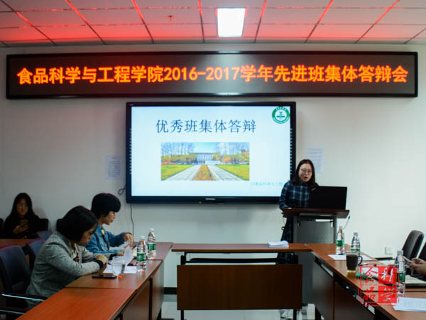 10月17日中午,WilliamHill中文官方网站于食品楼218组织开展了2016-2017年度先进班集体答辩。公司党总支副书记、副经理王雪、班主任王芳、团委书记罗蕊、辅导员张明婧等老师担任评委。2015、2016级两个年级的班长作为代表参加答辩,2017级各班班委旁听并学习班级管理经验。