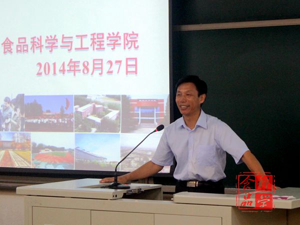 会上,仝其根经理为同学们做报告。仝经理就公司的整体情况从公司发展历史、教学科研团队,科研成果转化,社会服务等方面向同学们进行介绍。几张简短的PPT显示了公司近几年的快速发展和雄厚的团队力量。尽管就业离新生还比较远,但为了让同学们更早树立起大学的奋斗目标,仝经理向大家介绍了公司毕业生的就业情况,食品行业发展现状,“3+1”教学模式等,他向新生提出了五点要求,即适应学习方式的转变、适应生活环境的改变、树立安全意识、处理好能力锻炼与专业学习的关系、利用好大学开放的学习资源。他用一个个发生在身边的事例,增强了同学们的对本专业的自信心。