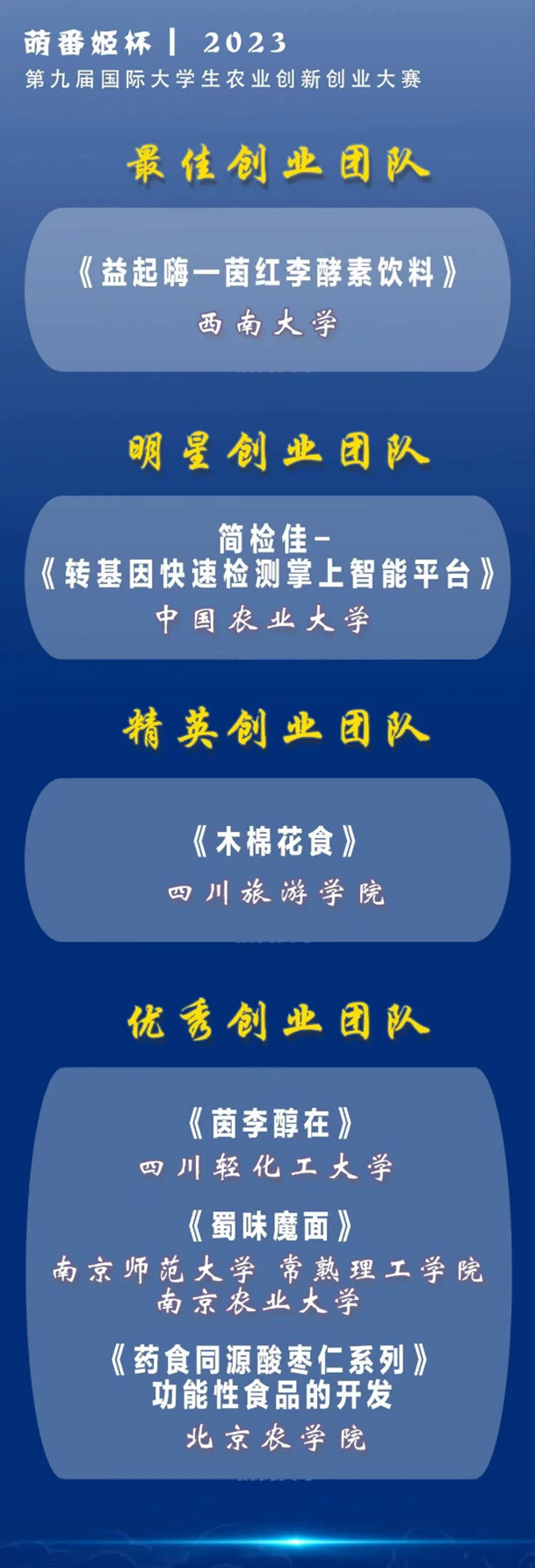 2023年1月15日,第九届“萌番姬杯”国际老员工农业创新创业大赛决赛在北京中红乡村振兴文化创业园成功举办。WilliamHill中文官方网站副经理丁轲和文法与城乡发展公司教师毛洋共同指导WilliamHill中文官方网站研究生王荟文、杨帆、王迎秋和邹源鑫,本科生龚正龙和刘可欣,以«药食同源酸枣仁系列功能性食品的开发»项目参赛,经过层层选拔,从331个项目中脱颖而出,荣获优秀创业团队奖。
