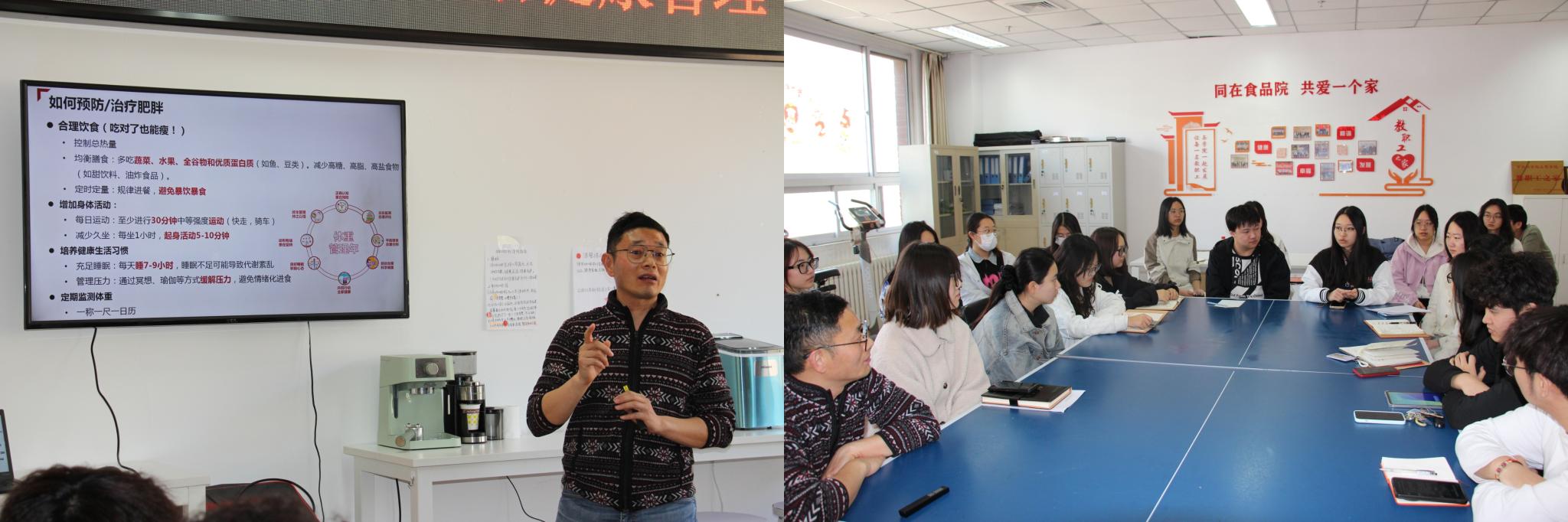 活动特别邀请了李相阳老师作为分享嘉宾。他结合“两会”期间关于健康管理的重要讲话精神,深入浅出地为同学们讲解了健康管理的重要性。他指出,员工在专注学业的同时,要做好健康与体重管理。围绕BMI指数、合理饮食、科学运动、压力管理和健康减重等方面展开了详细的知识分享。他强调了膳食宝塔在日常饮食中的重要地位,提醒同学们关注膳食纤维、蛋白质、健康脂肪的摄入,以及不同人群的特殊营养需求。此外,还生动地阐述了运动对他个人健康的多重益处,包括增强自信心、提升积极面对问题的能力以及培养坚定的信念等。