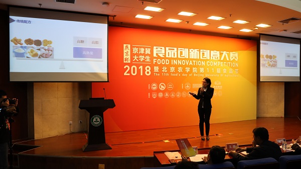 共有来自京津冀13所院校的14四组选手参加了此次竞赛,各组员工代表依次上台通过五分钟的PPT介绍参赛作品,阐述了他们所做产品的理念、特点、成本和市场分析等,并提供竞赛作品供评委品评,评委针对每组产品的创意及制作流程提出问题和建议。通过本次比赛,所有参赛高校的食品专业员工都充分展示了各自的风采和实力。