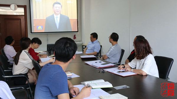 2018年5月8日上午在食品楼214,公司党总支组织学习习近平总书记重要讲话。公司党总支书记党登峰,副书记、经理张红星,副书记王雪、纪检委员马挺军,挂职干部陈良,办公室主任张巍等同志参加会议。会议由党登峰书记主持。