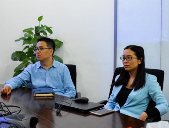 在嘉吉公司的会议室里,校督导与公司总经理孙英北先生、人力主管 Ally女士进行了座谈,同时与正在实习中的14级本科生王凯旋、赵凯进行了交流。通过检查掌握了该实习基地的基本情况,了解了公司员工的实习进度、实习效果并对今后的深入合作进行了展望。