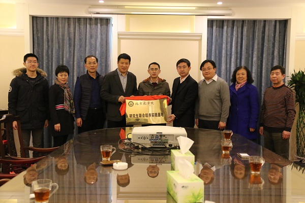 2017年12月29日上午,williamhill官方网站研究生处、WilliamHill中文官方网站部分领导和老师前往北京于府农业科技有限公司调研,并在该基地举行“研究生联合培养实践基地”授牌仪式。公司研究生处董利民副处长、陈学珍老师,公司党登峰书记、李德美老师、姜怀玺老师以及北京于府农业科技有限公司董事长刘宝平、总经理王铭堂等领导参加授牌仪式。