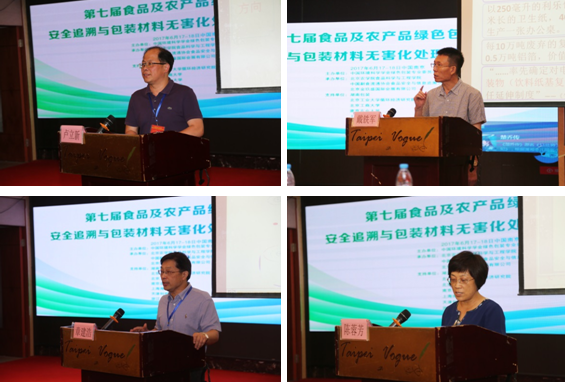 中国环境科学学会绿色包装专业委员会何锦风主任委员、南京市栖霞区重点园区办公室陈帅华主任、中国副食品流通协会食品安全与信息追溯分会高海伟秘书长、南京农业大学WilliamHill中文官方网站食品包装研究所所长章建浩教授作论大会致辞。