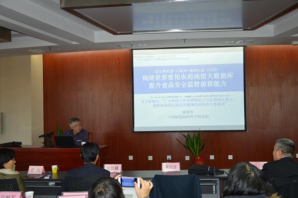 中国检验检疫科学研究院庞国芳院士做题为“高分辨质谱+互联网+地理信息(GIS) 构建世界常用农药残留大数据库提升食品质量安全监管能力”的专题报告