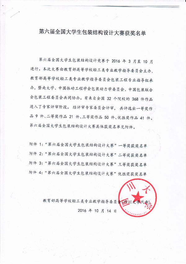 让我们对以上获奖的同学和师生表示祝贺,同时也期待公司师生在2017年全国包装结构设计大赛中再接再厉,为公司争得更高的荣誉。