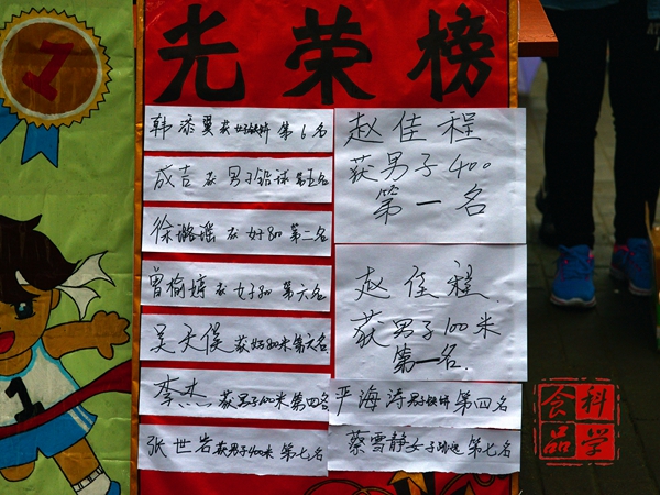除了运动员,其他同学也积极参与到运动会中。志愿者们分布在操场各处,无微不至地服务着奋斗中的运动员们;裁判们坐在跑道边上,手执笔与本,认真记录着运动员挥洒汗水的成绩;记者们扛着照相机,在操场上穿梭、奔波,“咔嚓、咔嚓”精彩瞬间永存;广播台激情澎湃地朗诵着加油稿,声音回荡整个操场;观众们挥舞着鼓掌拍,喇叭与话筒并用,敲锣打鼓,呐喊着运动员的名字……