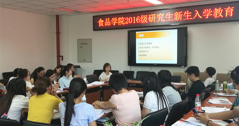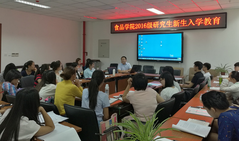 2016年9月8日下午,食品科公司工程公司组织开展2016级全日制硕士研究生新生入学教育活动。公司副经理党登峰,张红星教授、綦菁华教授、王宗义副教授,团委书记刘海燕、研究生秘书段慧霞和全体2016级研究生新生参加了入学教育会。