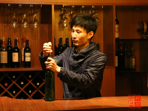 最后大家来到了散发着诱人气息的品酒屋,酒架上的葡萄酒折射着略带昏黄的灯光,泛着迷醉的光晕,这就是所谓的“酒不醉人人自醉”吧。张亚东学长还向大家介绍了开酒的技巧,同学们都听的很认真。