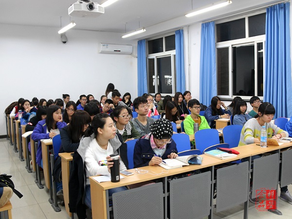 安全班则迎来了两位学姐和一位学长。李甜学姐主要从社团和自学两方面讲起。她热爱运动,参加了定向社和国旗班。国旗班的训练让她养成了早起的好习惯。她最后总结道:“习惯在你的生活安排中占很重要的地位。在学习方面,我们要养成预习,自学的好习惯,这会使我们受益匪浅。”而刘尧学长则与众不同,他一上场就在黑板上板书了“化学的父亲们”,学长用生动幽默的话语讲述了著名化学家的重大成就,这使现场的气氛逐渐高涨了起来,他认为,现在的老员工正需要这种科学的精神以及追求真理的信念。接下来,高青明确为大家指出了大学与高中的种种不同:在大学里要求我们学会主动学习,不能指望老师像高中那样督促你。