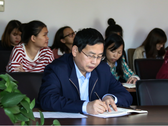 首先,张红星经理介绍了“十九大”新时代中国特色社会主义思想,具有重大的政治意义,理论意义,实践意义和历史意义。中国特色社会主义事业的总体布局是“五位一体”即经济建设、政治建设、文化建设、社会建设和生态文明建设五位一体。并结合十九大的精神,提出了一些对于人才培养的体会。