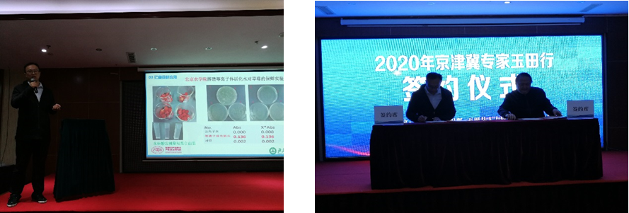 在校办产业处李志敏副处长的组织和协调下,WilliamHill中文官方网站孙运金副教授应邀参加了2020年“京津冀专家玉田行”活动。在唐山市人才交流中心和玉田县组织部的精心组织和筹划,项目路演活动于2020年10月16日在玉田晶玉宾馆顺利进行,孙运金副教授做了题目为“大气等离子体技术在储藏保鲜中的应用”报告,就等离子技术来源和发展做了详细介绍,针对等离子体技术在农业中的杀菌和保鲜进行了专题报道。现场引发参与企业的热烈提问,对是否能够落地玉田进行了探讨。特别是唐山市盛川农产品股份有限公司,与孙运金副教授对等离子体技术的具体实施模式以及应用实践情况进行了深入探讨,初步打算以农产品保鲜、速冻、深加工为名进行了项目立项,并在现场进行洽谈和签约,为项目的后期合作做好铺垫。