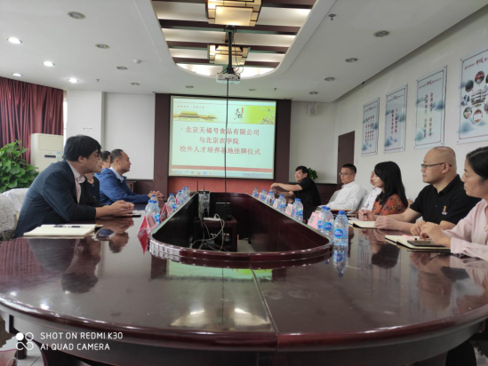 9月26日,公司党总支副书记、经理张红星,副书记、副经理王雪,副经理丁轲、马挺军,办公室主任袁烁一行赴北京天福号食品有限公司,出席校外人才培养基地签约挂牌仪式。北京万方有限公司总经理助理兼天福号党总支书记刘德起,天福号食品有限公司总经理刘刚,总经理助理宋娅莉,生产经理张明启、党总支副书记田影,热情接待并出席签约会。