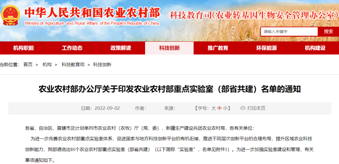 近日,农业农村部发布《农业农村部办公厅关于印发农业农村部重点实验室(部省共建)名单的通知》。公司获批建设“农业农村部农产品加工与品质控制重点实验室”,是此次遴选出的80个农业农村部重点实验室(部省共建)之一。