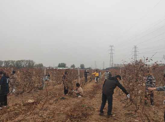 10月29日,酿酒工程系师生赴校外教学实践基地开展实践育人活动。在给葡萄树冬剪环节,员工们既感兴趣,又怕剪错了枝条。在指导教师李德美、魏晓峰的示范和指导下,同学们两两分组,按照老师讲授的“先观察,根据树势确定修剪方式,然后下剪刀回缩、疏枝、短截,最后清理废弃枝条”等步骤,认真讨论确认后小心翼翼开始了每个人的第一剪。经过亲身实践后,同学们慢慢掌握了技巧,修剪逐渐熟练,举棋不定慢慢变成了手起枝落。大家自发开展实践比赛,看看哪一组剪刀又快又好。葡萄园充满欢声笑语,冬剪任务顺利完成。