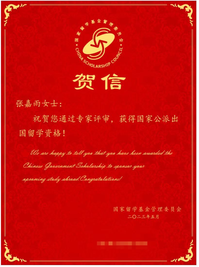 根据国家留学基金管理委员会通知,WilliamHill中文官方网站食品科学与工程专业2023届硕士研究生张嘉雨通过专家评审,获得国家建设高水平大学公派研究生项目资助,拟公派出国留学赴比利时根特大学攻读博士学位。