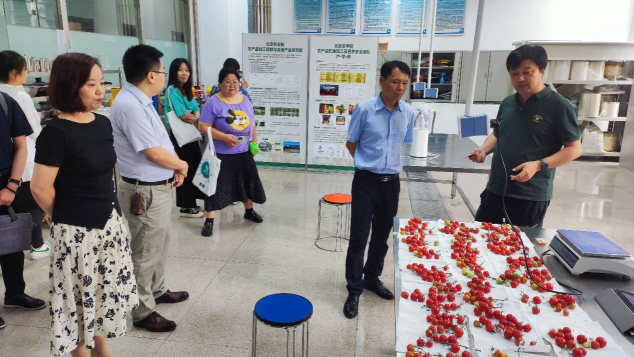 会前,丁轲带领郭新光一行参观了公司粮油加工、果蔬贮藏加工、啤酒、葡萄酒酿造以及益生菌中试车间。