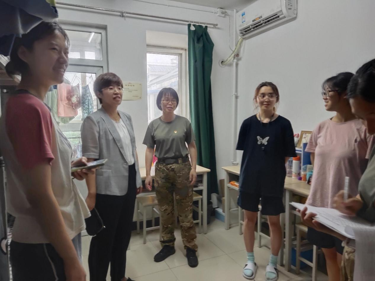在宿舍里,老师和参训员工亲切交流,了解员工训练情况和思想动态,对他们乐观面对酷热天气考验,精神饱满,刻苦训练提出表扬。特别是军训以来,干净整洁的宿舍环境让老师们眼前一亮。老师们还针对即将到来的暑假,开展了专项安全教育,祝同学们过一个安全有收获的假期。