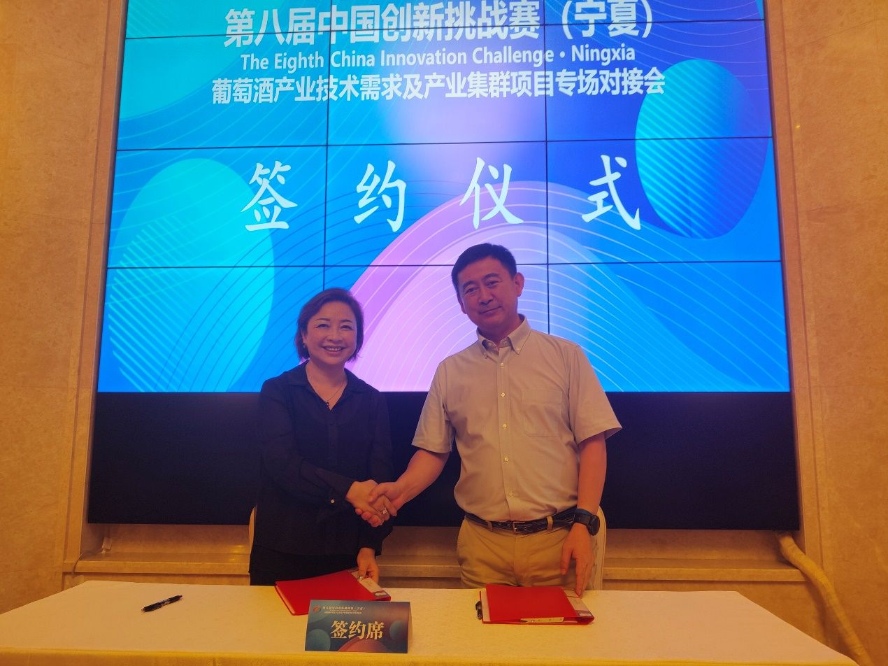 中国创新挑战赛(宁夏)由科学技术部火炬高技术产业开发中心、宁夏回族自治区科学技术厅、宁夏贺兰山东麓葡萄酒产业园区管理委员会联合主办。会议现场发布了“葡萄酒国产优质酿酒酵母的引进及应用”“苹乳发酵过程缓慢或终止发酵的研究”等32项技术创新需求。期间,李德美代表团队针对4项需求开展了“中国干旱地区酒庄葡萄酒生产技术集成”的路演报告,展示了williamhill官方网站在葡萄酒产业技术领域的研究成果和创新实力。宁夏产区多个酒庄对团队的研究技术表达了合作意向。团队与宁夏长和翡翠酒庄有限公司签署了合作协议,内容涵盖葡萄种植、酿酒技术、市场推广等多个领域。双方共同致力于推动葡萄酒产业的发展和创新,为产业的跨界合作注入了新动力。