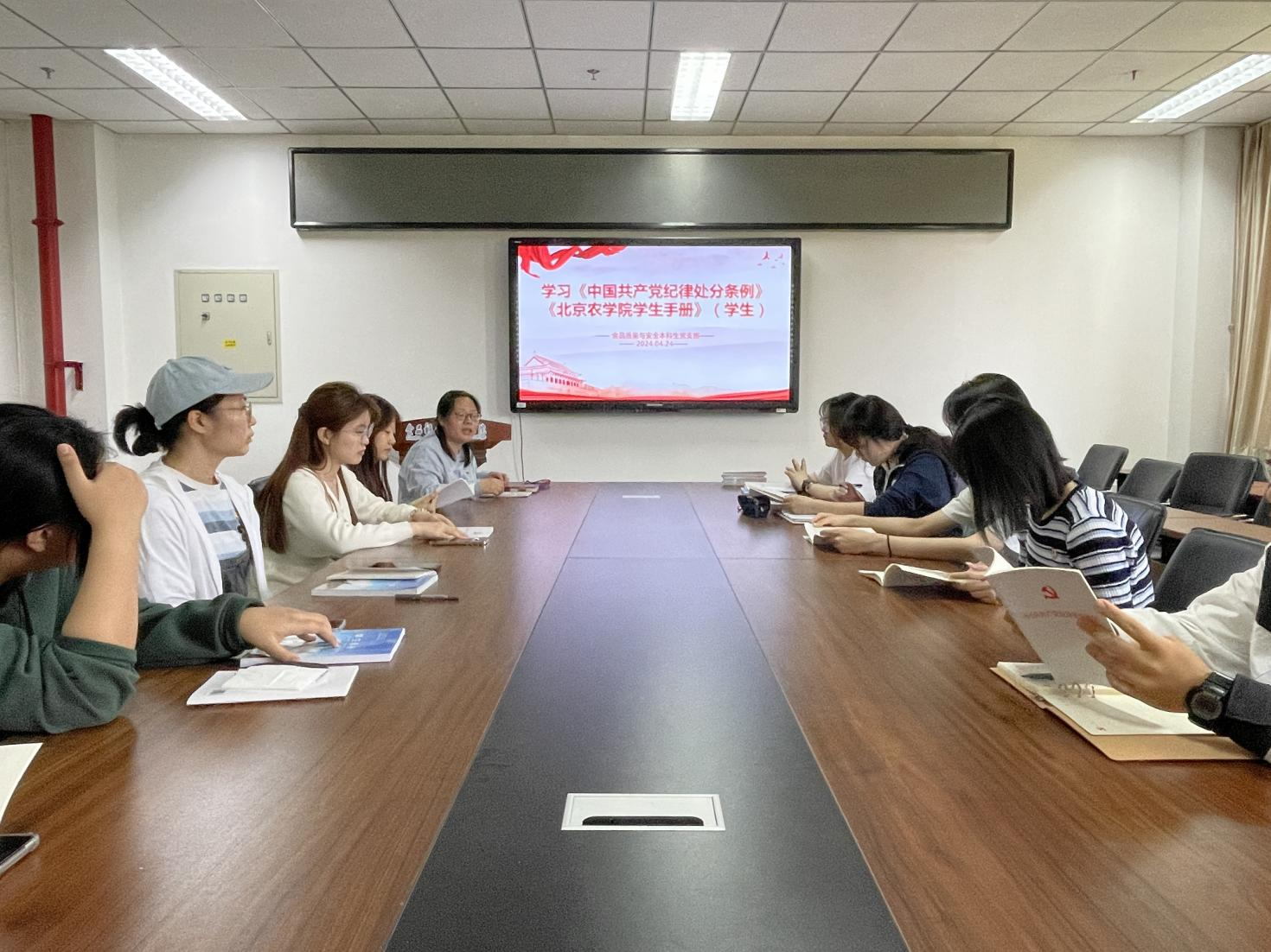 食品质量与安全本科生党支部充分发挥学习小组作用,由各学习小组分别交流《中国共产党纪律处分条例》学习体会。支部书记张馨如带领员工党员深入学习《员工手册》中员工违纪处分实施细则以及考试违规处理实施细则等相关条款和规定,利用身边案例,详细讲解常见员工违纪行为及相应处理方法。