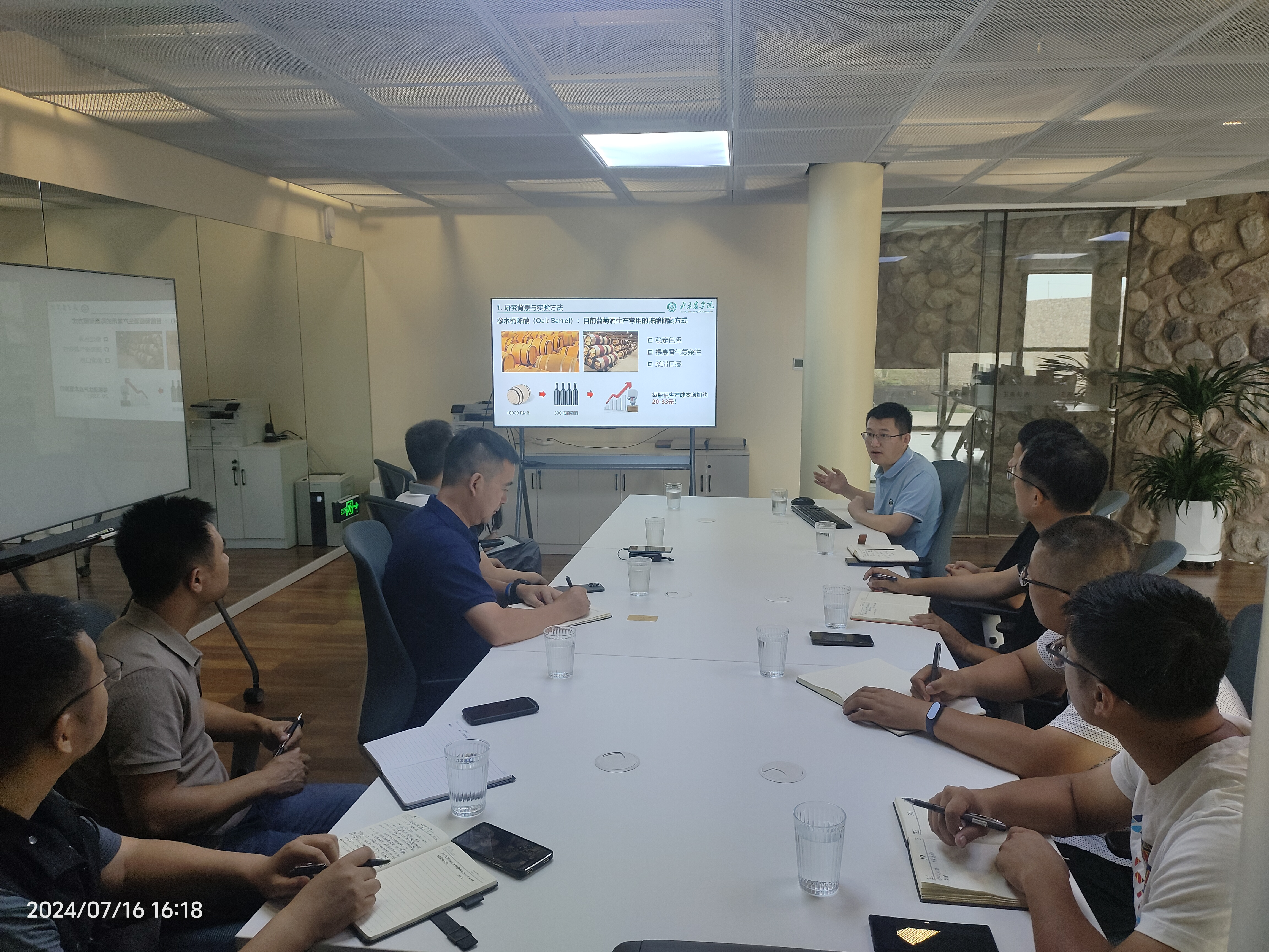 在华昊酒庄,魏晓峰代表团队对双方合作申请的“2023年宁夏葡萄及葡萄酒特色产业集群项目产学研用科技创新项目”的进展情况及初步结果进行了汇报。团队对酒庄的桃红、“亿万年”、“世外之物”、利口酒等马瑟兰系列产品进行了品鉴,并提出了改进建议。李德美对酒窖的科学性建设提出了指导意见,魏晓峰对酒庄目前开展的套袋试验给出了经验看法。