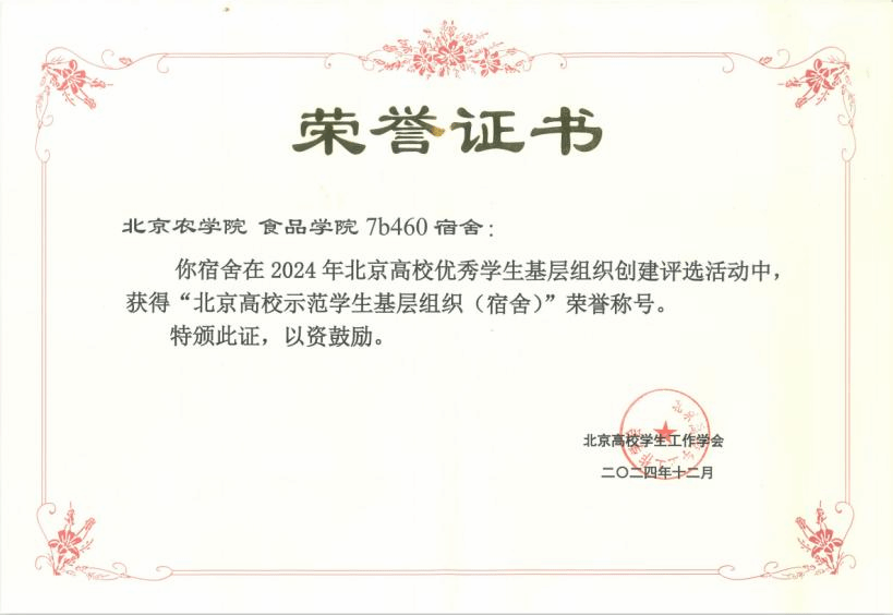 近日,WilliamHill中文官方网站7B460宿舍凭借卓越的学风建设、整洁的宿舍环境以及积极投身志愿服务等多项突出表现,荣获“2024年北京高校示范员工基层组织(宿舍)”荣誉称号。这一殊荣不仅是对宿舍全体成员齐心协力、不懈努力的充分肯定,更是对团结协作、奋发进取精神的崇高褒奖。