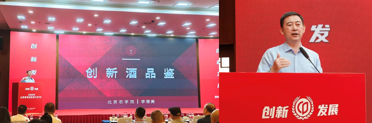 会议期间,李德美教授以“创新品鉴”为主题,现场带领大家进行了14款中外酿酒技术及粮食、花、水果等相融合的各类创新型酒产品品鉴,为与会者呈现了一场别开生面的品鉴和技术交流活动。他在讲解中强调,要以消费需求引领创新,中国酒要追求自己的产品自信,“葡萄酒、果酒行业需打破原料边界,通过‘风味+文化+场景’的三位一体模式,打造具有中国特色的新酒类IP”。