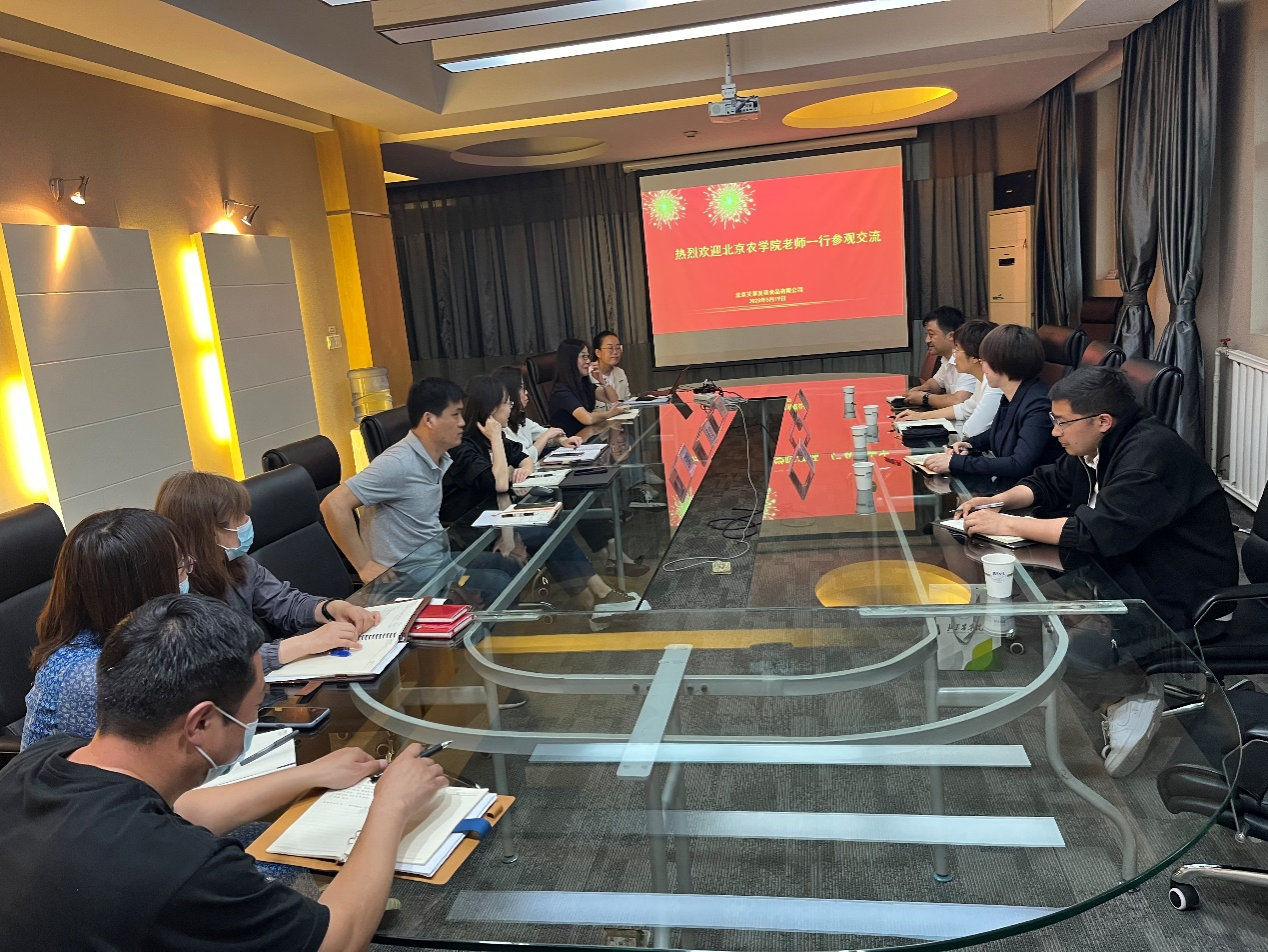 为推动学习贯彻习近平新时代中国特色社会主义思想主题教育走深走实,促进毕业生高质量就业,5月19日下午,公司党委书记靳晓熙带队前往食品行业龙头企业北京艾莱发喜食品有限公司访企拓岗,了解毕业生实习情况,拓展就业机会。公司党委副书记、副经理王雪,副经理丁轲,青年教师王昊然,少数民族特培学员尼加提·图尔迪麦麦提随同前往。北京艾莱发喜食品有限公司人力资源部经理邓长青、生产部经理吴红、品质控制部经理纪晓华等参加调研。