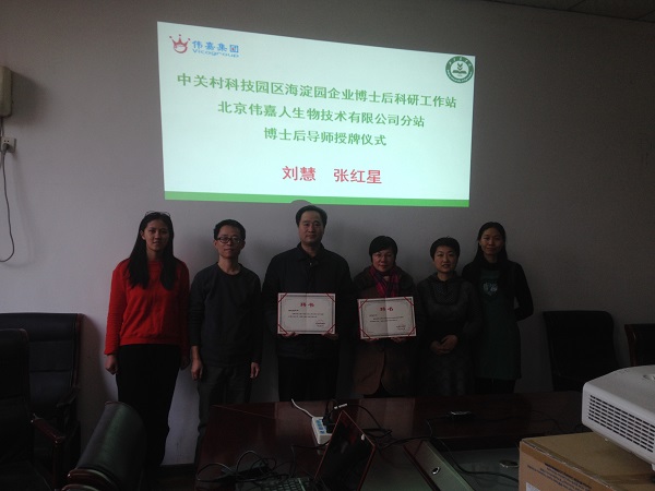 2015年2月6日,中关村科技园区海淀园企业博士后科研工作站北京伟嘉人生物技术有限公司分站分别授予张红星教授、刘慧教授博士后导师并颁发聘书。聘任仪式在公司第三会议室举行。按照议程安排,首先由主持人宣读《中关...